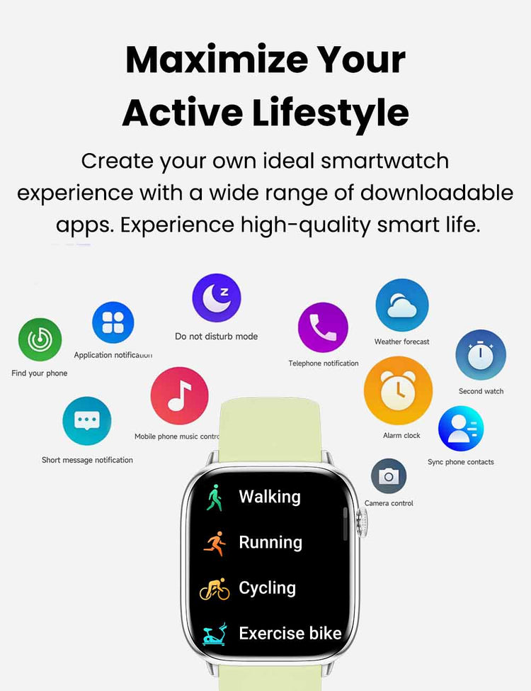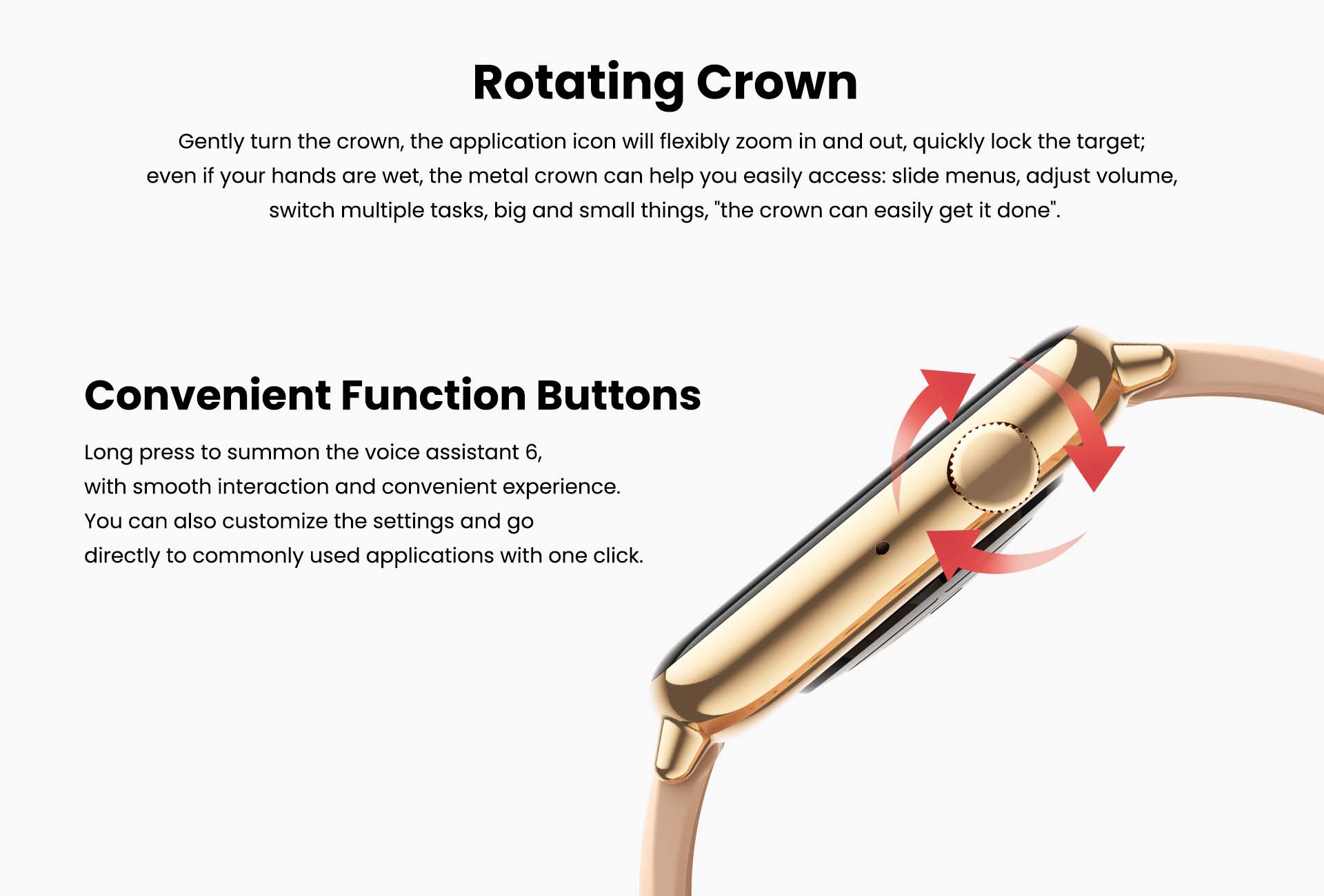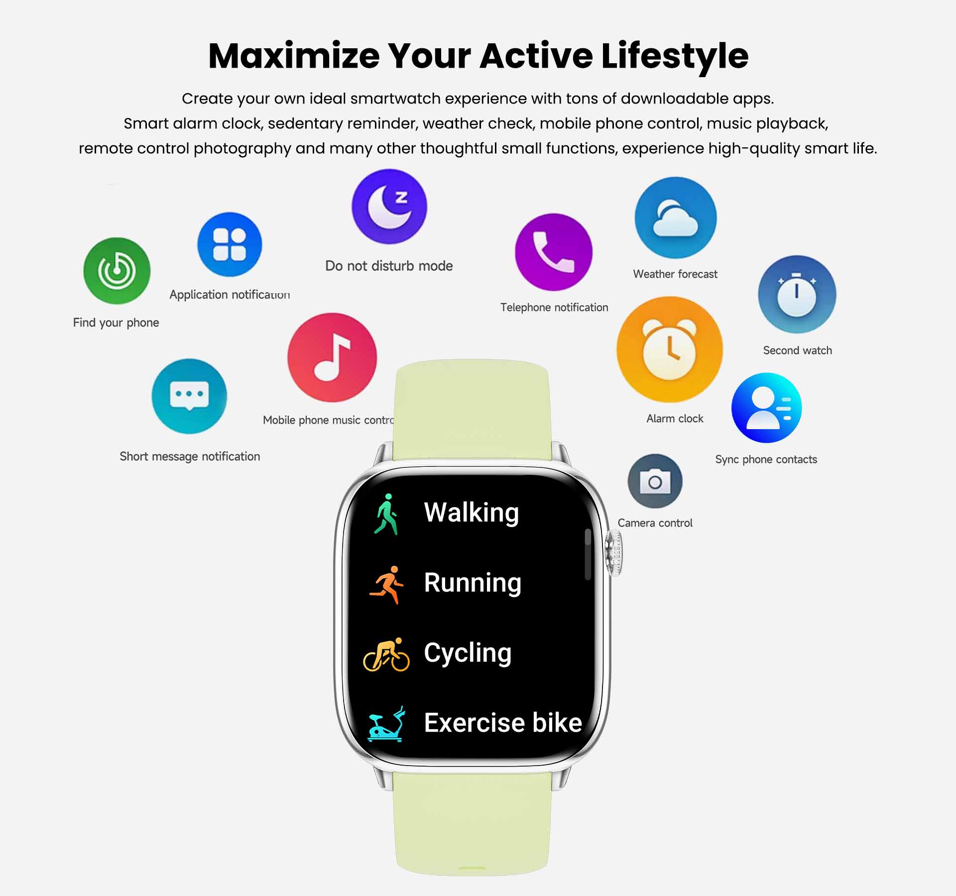 Wrist lift to light up the screen, alarm clock reminder, remote control to take photos, find your phone, etc.